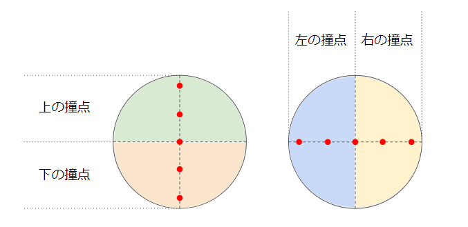 撞点には上下の撞点と左右の撞点があり、上下の撞点は押し引きの撞点、左右の撞点はひねりの撞点です。